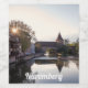 Sonnenuntergang über der alten mittelalterlichen Brücke über den Fluss Pegnitz in Nürnberg. Fronveste und Schlayerturm