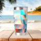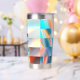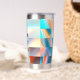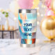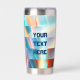 Eine farbenfrohe und höchst abstrakte Darstellung eines Sonnenuntergangs. Die Farben reichen vom Blau des Himmels über das Gelbe der Sonne bis hin zu orangen und roten Wolken am Horizont. Passen Sie Ihren eigenen Text an.