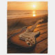Eine Gitarre ruht am Ufer, während der Sonnenuntergang den Horizont in warmen goldenen Tönen malt. Die perfekte Mischung aus Musik und Natur, die Ruhe, Inspiration und das Gefühl vermittelt, dass jeder Akkord mit dem schwindenden Licht des Abends mitschwingt.