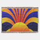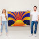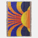 Sun Graffiti Ziegelwand ist ein digitales Kunstwerk mit dunkelblauem Gradientenhintergrund und gelber reflexorangefarbener Gradientensonne am Boden, Sonnenstrahlen leuchten nach oben und nach außen.