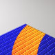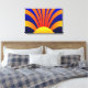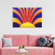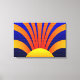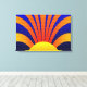 Sun Graffiti Ziegelwand ist ein digitales Kunstwerk mit dunkelblauem Gradientenhintergrund und gelber reflexorangefarbener Gradientensonne am Boden, Sonnenstrahlen leuchten nach oben und nach außen.