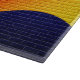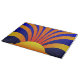 Sun Graffiti Ziegelwand ist ein digitales Kunstwerk mit dunkelblauem Gradientenhintergrund und gelber reflexorangefarbener Gradientensonne am Boden, Sonnenstrahlen leuchten nach oben und nach außen.