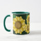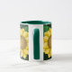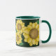 Gelbe Volkskunst-Blumen auf einem dunkelgrünen Hintergrund auf diesem bunten Tassenentwurf - lässt Ihren Morgenkaffee so gut zweimal schmecken!