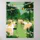 Eine charmante Outdoor-Abschlussfeier in einem üppigen Garten, gefüllt mit Gänseblümchen, Grün und festlichen Dekorationen. Lange Tische mit gelben karierten Tischdecken, warme Hängelampen und fröhliche Blumengestecke schaffen eine fröhliche Atmosphäre, die perfekt ist, um einen Absolventen zu ehren. Diese helle und einladende Szene fängt die Aufregung über die Errungenschaft, Freundschaft und Sommerzusammenkünfte, umgeben von Natur und weichem goldenem Licht, ein.
