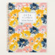 Personalisieren Sie diesen sonnigen Planer mit Ihrem Namen in dunkelblau kursiv gerahmt durch ein weißes Rechteck, auf einem kühnen, farbenfrohen Hintergrund von Aquarellfarben-Blume in den Farbtönen Gelb, Rosa und Marineblau.