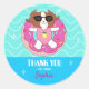 Diese Aufkleber zeigen eine Darstellung von Sophie, einem Hundekarikaturencharakter, der sich auf ihrem staubförmigen Schwimmbecken entspannt. Sophie ist ein brauner und weißer Hund, der einen Ananas-Anzug trägt. Sie trägt eine Sonnenbrille. Der Donut aufblasbare Float hat einen hellrosa Zuckerguss mit bunten Sprinklen in Minzgrün, lila, gelb und dunkelrosa. Der Aufkleber hat eine glatte Linienführung und einen glänzenden Akzent. "Danke" ist in einem ballonförmigen Schriftart, und die Unterschrift für den Namen ist in Rosa. Passen Sie diese Aufkleber mit Ihrer eigenen Nachricht und Ihrem eigenen Namen an. Es wäre toll, Geschenktüten zu dekorieren, als Gastgeschenke oder als besondere Touch, um Dankeschön-Karten zu kleiden.
