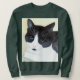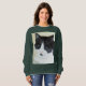 Ein Aquarellbild einer glücklichen, schwarz-weißen Katze namens Sophie. Sie war eine wilde Katze, die durch ihre teilweise Lähmung verwundbar war. Sie wurde von einem Freund gefangen genommen, erhielt tierärztliche Versorgung und lebt jetzt im Haus.