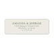 This return address label features a minimalist and elegant design with a centered layout on a light beige background. The muted green serif font adds a touch of sophistication, creating a harmonious and classic look. Perfect for formal occasions, the ample spacing and clean lines ensure clarity and readability while conveying a professional yet approachable tone.