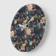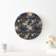 Sophisticated Gold Flowers On Navy Blue Große Wanduhr