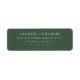 This elegant label features a minimalist design with a deep forest green background and crisp white text, creating a sophisticated and modern look. The typography is clean and bold, using a serif font that adds a touch of formality, perfect for personalizing envelopes or packages. Its simple layout emphasizes clarity and readability, making it ideal for formal occasions like weddings or special events. The understated elegance and refined color palette convey a sense of sophistication, ensuring your message stands out in style.