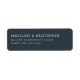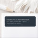 This return address label features a sophisticated and minimalistic design with a deep navy blue background and crisp white text, creating an elegant contrast. The layout is centered and balanced, emphasizing clarity and formality through its use of clean, modern sans-serif typography. Perfect for those seeking a classic and professional look, this label combines simplicity with a timeless aesthetic, making it ideal for formal correspondence or special occasions.
