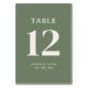 Diese Hochzeitstischkarte verfügt über ein minimalistisches Design mit einem soliden olivgrünen Hintergrund und knackigem weißen Text. Das Layout ist sauber und modern und zeigt das Wort "TABLE" in fetter Serifenschrift oben, gefolgt von einer großen Zahl "12" als Blickfang. Darunter werden anpassbare Namen und Daten in einer einfachen serifenlosen Schriftart präsentiert, wodurch eine elegante Balance erhalten bleibt. Der Gesamtstil strahlt Raffinesse und unterschätzte Eleganz aus, perfekt für formelle Anlässe, bei denen Klarheit und Stil unerlässlich sind.