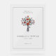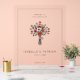 This wedding sign features a minimalist, modern design with a centered bouquet illustration of red poppies, white daisies, and green foliage, creating an elegant and inviting focal point. The color palette includes vibrant reds, crisp whites, and lush greens, complemented by clean lines and flat colors for a contemporary feel. The typography combines bold serif fonts for the names with simple sans-serif fonts for additional details, ensuring readability and sophistication. Perfect for adding a touch of warmth and style to any wedding celebration, this sign is customizable to suit your special day.