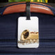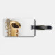 Dieser Gepäckanhänger hat ein Bild eines gebogenen Sopran-Saxophons.