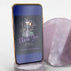 Chic élégant Halloween bleu nuit et violet aquarelle typographie carte de remerciements nuptiale avec une sorcière dans une robe de fusain gris et casquette avec un balai et bois de brosse. Convient pour la douche nuptiale à thème sorcière d'Halloween. Téléchargement numérique disponible.