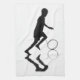 Ein kleiner Junge spielt am Strand in Senegal, Afrika. Die Silhouette eines Fischersohns, der mit dem uralten klassischen Spielzeug, dem Hoop und dem Stick beim Surfen spielt.