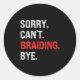 Sorry Can't Braiding Bye Retro Braiding Lovers Runder Aufkleber
