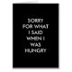 Diese einfache Karte ist mit dem lustigen, aber wahren Sprichwort, Leid für das, was ich sagte, als ich HUNGRY WAR. Sie kommen, um die Erholung der Nachricht zu beenden, da das Innere leer verlassen wurde, in Erwartung Ihrer Kreativität.