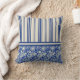 Dieses schmale Kissen mit blauen und elfenbeinfarbenen vertikalen Streifen, die zu einem blauen Elfenbeinmuster hinablaufen, inspiriert von einem Viktorianischen englischen Muster, das von William Morris entworfen wurde. Ideal für Ihre Viktorianische Dekoration oder als Teil einer eklektischen Mischung aus Blau und Weiß.