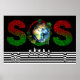 Gedanken um die Umwelt müssen nicht immer grau sein ! Stylisch für Dein Zuhause. SOS rettet den Planeten, Poster in schwarz - weiß, gestreift