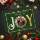 Simple feuille réelle, élégante et sobre photo de famille "Wishing You A Holiday Season Filled With Peace, Love and Joy" conception de la couronne avec photo circulaire centre design vacances de Noël. Le dos est vide.