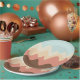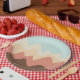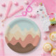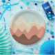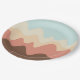 Ein Design aus unregelmäßigen Wellen oder hügeligen Formen, die wie eine Landschaft angeordnet sind, mit einer Progression von Bands, die eine hinter oder auf einer anderen abstrakt mit Farbe und Raum spielen. Das Design erinnert auch sehr an Klang und Musik, mit den wellenartigen Formen und der Harmonisierungsfarben.