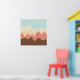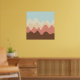 Ein Design aus unregelmäßigen Wellen oder hügeligen Formen, die wie eine Landschaft angeordnet sind, mit einer Progression von Bands, die eine hinter oder auf einer anderen abstrakt mit Farbe und Raum spielen. Das Design erinnert auch sehr an Klang und Musik, mit den wellenartigen Formen und der Harmonisierungsfarben.