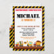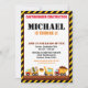 ATTENTION ! En construction ! Célébrez votre fête d'anniversaire de construction avec notre Invitation de la Fête de la construction. Cette invitation à la construction comprend une grue, un camion de saleté et un camion de bétonnière sur bandes jaunes et noires. Parfait pour votre petit constructeur en construction la fête d’anniversaire ou un bébé est en baby shower de construction.