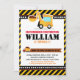 ATTENTION ! En construction ! Célébrez votre fête d'anniversaire de construction avec notre Invitation de la Fête de la construction. Cette invitation à la construction comprend une grue, un camion de saleté et un camion de bétonnière sur bandes jaunes et noires. Parfait pour votre petit constructeur en construction la fête d’anniversaire ou un bébé est en baby shower de construction.
