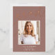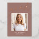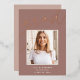 Customisez ce faire-part chic de graduation avec une photo de carré superposée sur le mot "GRAD" en écriture de feuille d'or rose, avec votre nom, l'école, et l'année de graduation. Ajoutez une photo supplémentaire et un message personnel à l'arrière.