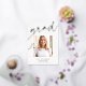 Customisez ce faire-part chic de graduation avec une photo de carré superposée sur le mot "GRAD" en écriture de feuille d'or rose, avec votre nom, l'école, et l'année de graduation. Ajoutez une photo supplémentaire et un message personnel à l'arrière.