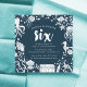 Les invitations à la fête d'anniversaire de la vie marine adorables pour le sixième anniversaire de votre enfant présentent un arrière - plan bleu foncé avec des illustrations de vie marine blanche entourant les détails de votre fête d'anniversaire.