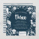 Les invitations à la fête d'anniversaire de la vie marine adorables pour le troisième anniversaire de votre enfant sont accompagnées d'un arrière - plan bleu foncé avec des illustrations de vie marine blanche entourant les détails de votre fête d'anniversaire.