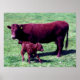 Es war mir eine Freude und ein Interesse, die Devon Ruby Kuh und ihr junges Kalb auf den grünen Hängen der Südküste von Devon zu sehen.