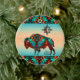 Personalisieren Sie dieses "One of a Kind" Südwest Buffalo Weihnachtsschmuck! Es verfügt über ein südwestliches Buffalo und eine Sonne auf einem türkisfarbenen und orangen Sonnenuntergang ...umgeben von türkisfarbenen, orangen und schwarzen Grenzen! Original Art Design von Künstler Kerry Miller.