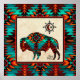 Dekorieren Sie Ihre Zuhause mit diesem einzigartigen "One of a Kind" Südwest Buffalo Poster! Es verfügt über eine südwestliche Buffalo-Silhouette auf einem Tan-Hintergrund...Umgeben von einer Südwestgrenze in Türkis, Orange & Black! Original Art Design von Künstler Kerry Miller.