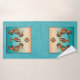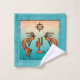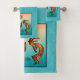 Mit diesem einzigartigen "One of a Kind" Set im Südwesten Kokopelli Badetuch dekorieren Sie Ihr Bad! Zwei Copper Kokopelli spielen Flute und tanzen um einen Kaktus unter der Sonne auf einem türkisfarbenen Hintergrund! Dieses Kokopelli Handtuch Set hat einen Matching Duschvorhang und Badematte. Das ist ein originelles Kunstdesign des Künstlers Kerry Miller.