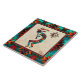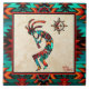 Brighten Sie Ihre Zuhause mit dieser einzigartigen "One of a Kind" Südwest Kokopelli Tile! Es besitzt einen Südwesten Kokopelli, der die Flute spielt und unter der Sonne auf Sandsteinhintergrund tanzt...Umgeben von einer Südwestgrenze in Türkis, Orange & Schwarz. Das ist ein originelles Kunstdesign des Künstlers Kerry Miller.