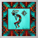 Dekorieren Sie Ihre Zuhause mit diesem einzigartigen "One of a Kind"-Poster im Südwesten von Kokopelli! Es hat einen Südwesten Kokopelli, der Flute spielt und unter der Sonne auf einem türkisfarbenen Hintergrund tanzt...Umgeben von einer Südwestgrenze in Türkis, Orange & Schwarz. Original Art Design von Künstler Kerry Miller.