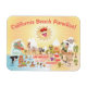 Ein Cartoon Südkaliforniens - mit Los Angeles, Anaheim, Long Beach, San Diego. Cartoon-Figuren aller Art schwimmen, spritzen und spielen unter der strahlenden kalifornischen Sonne, die hoch darüber leuchtet.