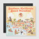 Ein Cartoon Südkaliforniens - zeigt Los Angeles, Anaheim, Long Beach, San Diego und andere Städte sowie die meisten Strände. Cartoon-Figuren aller Art schwimmen, spritzen und spielen unter der strahlenden kalifornischen Sonne, die hoch darüber leuchtet.