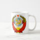 Erleben Sie den kalten Krieg mit dieser Tasse - Eigenschaften das sowjetische Emblem, Set auf einem weißen Hintergrund wieder. Das gleiche Emblem wird auf der Front und der Rückseite wiederholt.