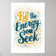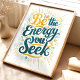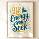 Rayonnez de positivité avec cette impression d'art vibrante "Soyez l'Énergie que Vous Cherchez". Caractérisée par une typographie audacieuse et un lavis aquarellé de couleurs édifiantes, cette pièce sert de puissant rappel pour cultiver l'énergie que vous souhaitez attirer. Parfaite pour ajouter une touche d'inspiration et de motivation à votre décoration de maison ou de bureau.