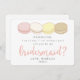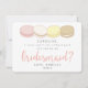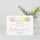 Demandez à vos meilleures filles de se tenir avec vous avec ces belles cartes. Les cartes rectangulaires arrondies présentent une rangée de macarons français dans les tons pastel d'ivoire, de jaune, de rose et de bronze, avec un mélange de lettres manuscrites chic minimaliste gris et rose acajou. Ajoutez le nom de votre femme de ménage, votre nom et votre date de mariage pour une tenue personnalisée. Le texte du corps par défaut dit : "Je ne peux pas dire que je le fais sans vous ! Serez-vous ma demoiselle d'honneur ?" et peut être modifié si désiré.