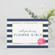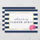 Inclure votre fille de fleurs dans le plaisir mariage avec cette belle carte. Le design est orné d'un arrière - plan à rayures marines audacieux, d'une bordure en faux or et d'une jolie pivoine rose aux aquarelles douces. Coordonnée avec nos suites d'invitation Navy Stripe & Pink Peony, fournitures de bureau, articles de maison et accessoires.