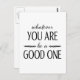 Carte postale inspirante affichant l'expression "Quoi que vous soyez un bon" en noir en utilisant une combinaison d'une police cursive et d'une police sans empattement.
