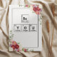 Présentation de la carte "Be You" inspirante, conçue avec une touche créative inspirée par le tableau périodique des éléments. Le message "Be You" est magnifiquement conçu à l'aide de symboles atomiques, rappelant au destinataire d'embrasser leurs qualités uniques et briller brillamment dans leur propre élément. Cette carte est un choix parfait pour autonomiser les autres et les encourager à être eux-mêmes authentiques d'une manière élégante et d'inspiration scientifique.