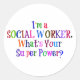 Sozialarbeiter Superheld, farbiger Text Runder Aufkleber