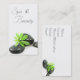 Wellness-Center und Schönheits-Geschäfts-Karte mit Therapiesteinen und grünes Blatt mit Wasser fallen.