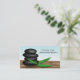 Cartes de visite avec une illustration paisible de rochers spas et feuilles en bambou sur une table en bambou pour votre spa et station de détente ou affaires locales.